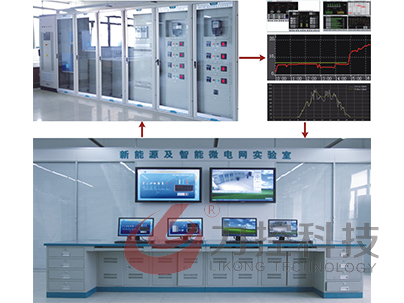 本系統由五個典型部分組成,分別儲能系統、供配電系統、監控調度系統、環境監控云服務系統、負載系統、及發電系統,其中發電部分有風力發電和太陽能發電及氫能源組成。微網系統具備:發電部分(分布式電源)、RLC可編程負載、智能開關柜單元、后臺監控調度系統。